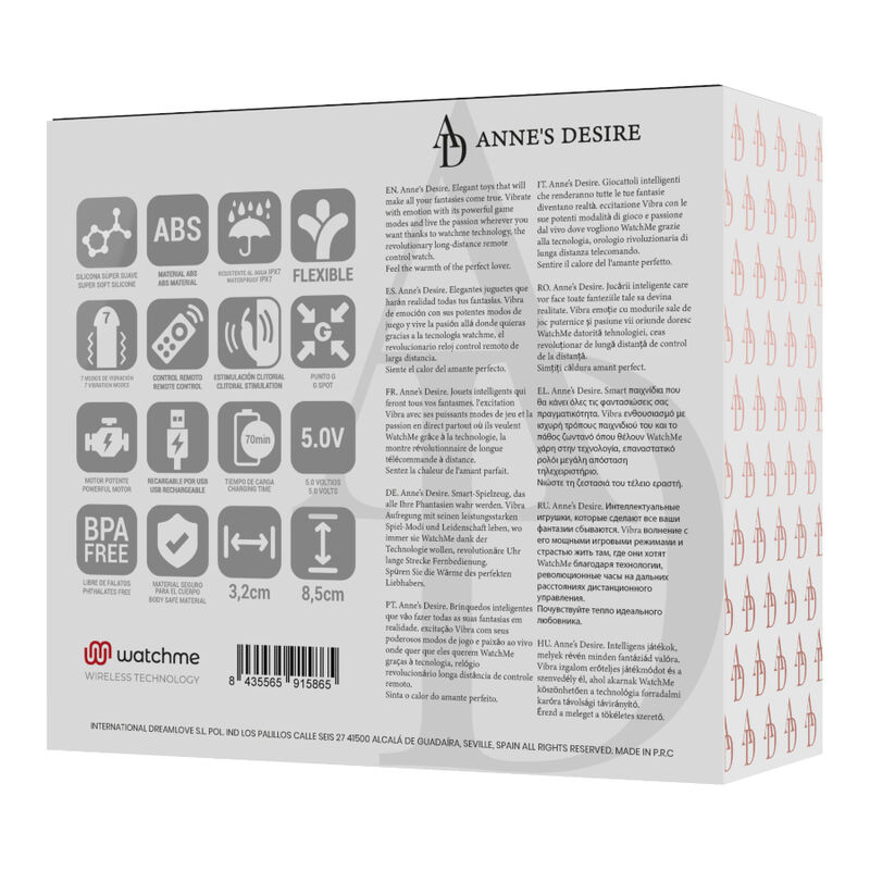 Wenn Sie dachten, dass alles in Bezug auf Sexspielzeug geschrieben wurde, haben Sie sich geirrt. Bei ANNE'S DESIRE haben sie eine neue Stufe des Vergnügens erreicht, ein spektakuläres Design und zusätzlich die patentierte WATCHME-Technologie.