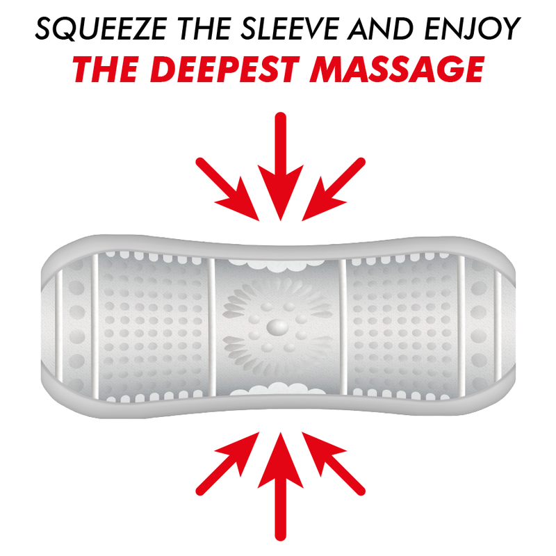 • Für noch mehr Empfindungen drücken Sie die Masturbationshülle zusammen