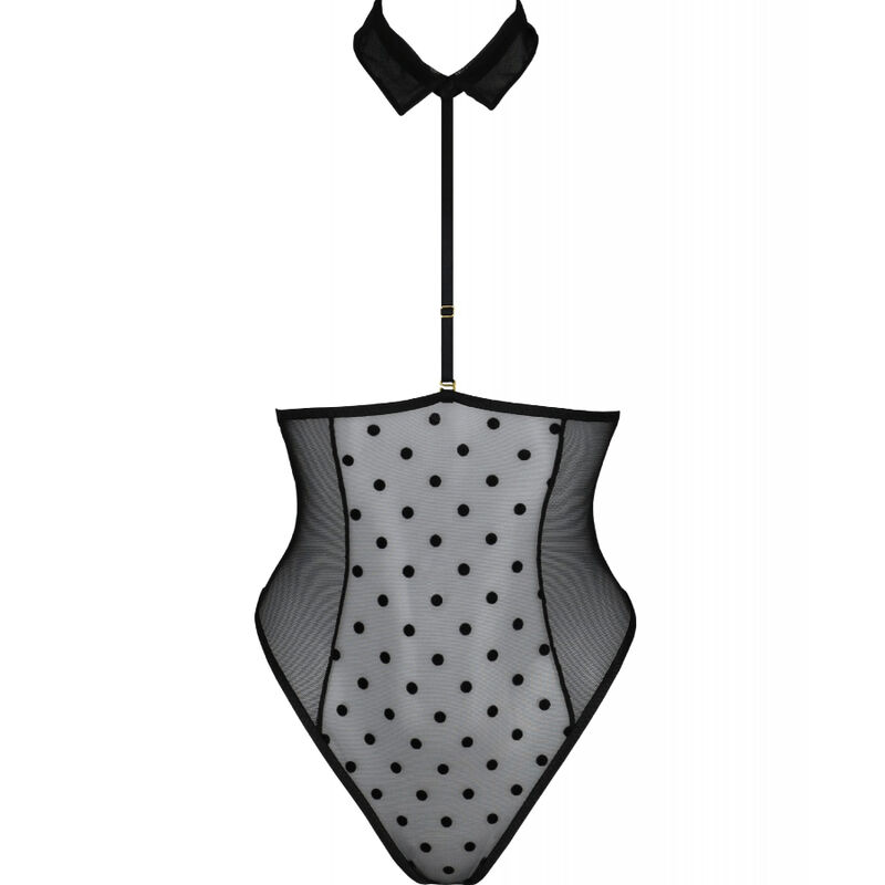 Dieser sexy Trisha -Body ist ein Vorschlag der Marke Passion und richtet sich an Frauen, die sich ihres Körpers und ihrer Weiblichkeit bewusst sind. Perfekt für jede Zeit und jeden Anlass, wenn Sie Spaß haben möchten. Das vorgestellte Modell legt die Brüste vollständig frei. Der Korsett-Rückenbesatz erhöht den Komfort. Ein sexy und abnehmbarer Halsreif verleiht dem Ganzen Charakter.
