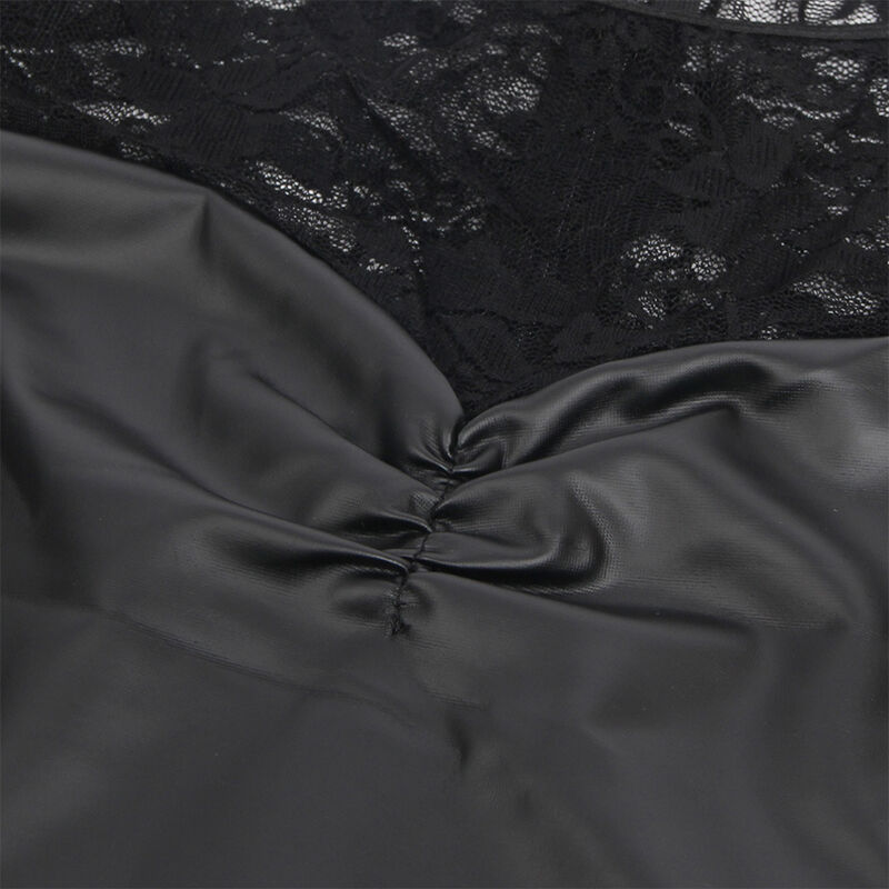 Das sexy schwarze Nachthemd aus PU-Leder mit langen Ärmeln und Spitze von SUBBLIME ist die perfekte Wahl für alle, die ein Kleidungsstück suchen, das Eleganz, Sinnlichkeit und einen gewagten Touch vereint. Spüren Sie die Macht der Verführung und werden Sie zum Protagonisten Ihrer eigenen Geschichte.