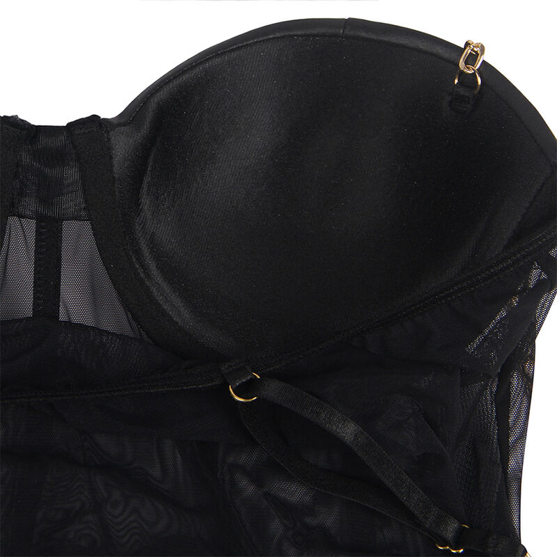 Entdecken Sie die perfekte Balance zwischen Sinnlichkeit und Eleganz mit dem One Piece Metal Strap See Through Underwire Bodysuit der Marke Subblime. Dieser Bodysuit wurde sorgfältig entworfen, um Ihre Figur hervorzuheben und Ihrer Dessous-Garderobe einen mutigen Touch zu verleihen.