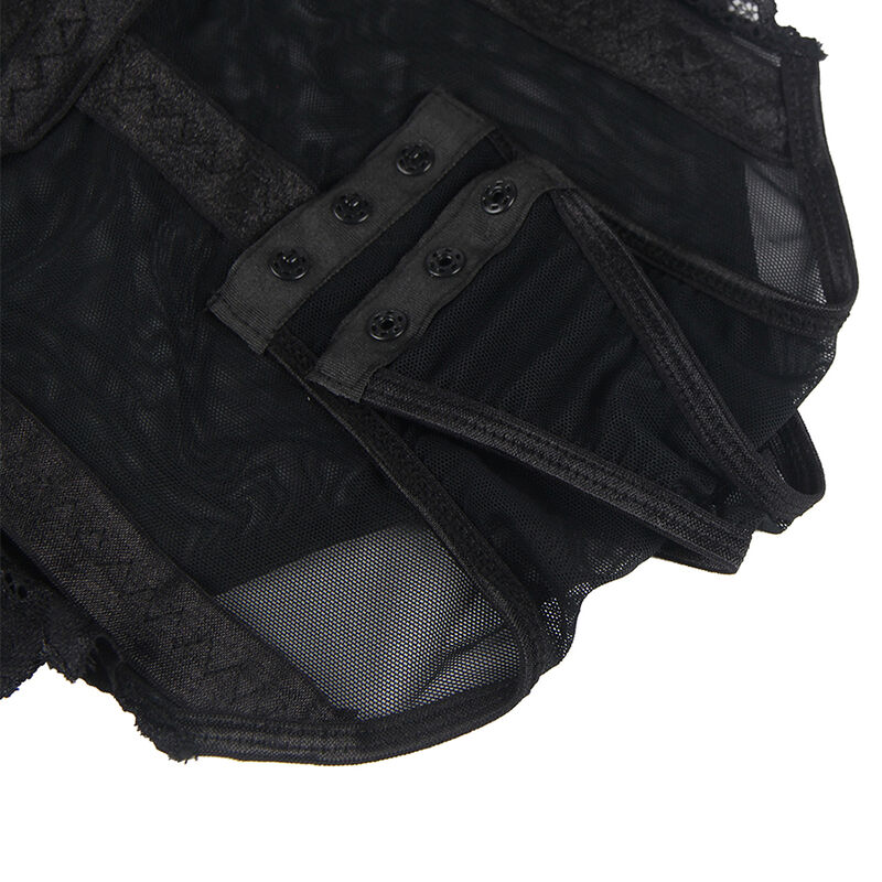 - Integrierter Strumpfhalter : Enthält einen integrierten Strumpfgürtel mit Beinringen, der einen Hauch von Verspieltheit und Stil verleiht. Diese Details schmeicheln nicht nur Ihrer Figur, sondern bieten auch einen sicheren und bequemen Sitz.