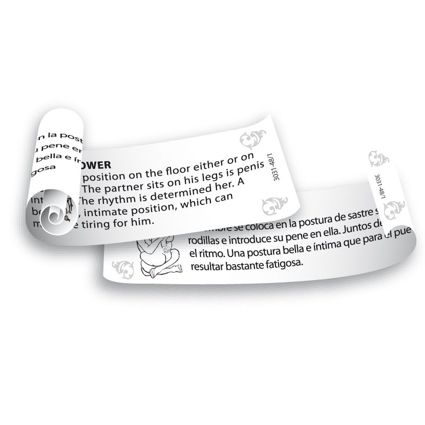 Eine Sensation für Sie und Ihren Partner! Mit der Pinzette pflücken Sie eine Schriftrolle aus dem Herzen. Welche erotische Position wirst du ausprobieren? Wird es die Göttinnenfahrt, das Liebesboot oder die Anbetung sein? Nehmen Sie die Herausforderung an und erleben Sie gemeinsam Vergnügen und Intimität.